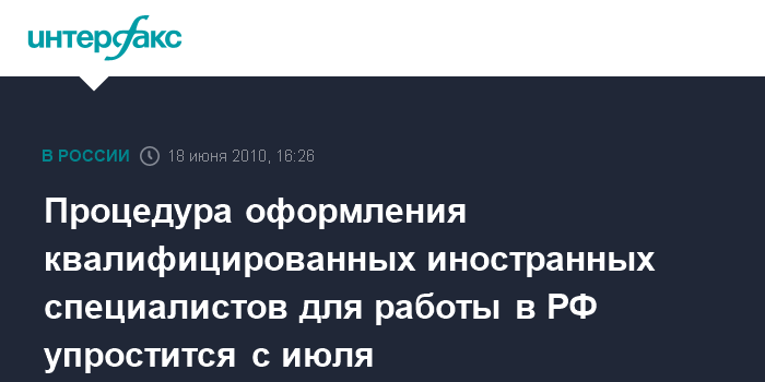 Процедура оформления квалифицированных иностранных специалистов для работы в РФ упростится с июля