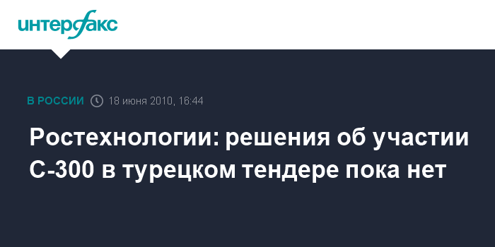Москва. 18 июня. INTERFAX.RU – Россия пока не приняла решения об участии в тендере на поставку Турции систем противовоздушной обороны (ПВО) дальнего радиуса действия, заявил первый замглавы Ростехнологий Алексей Алешин.