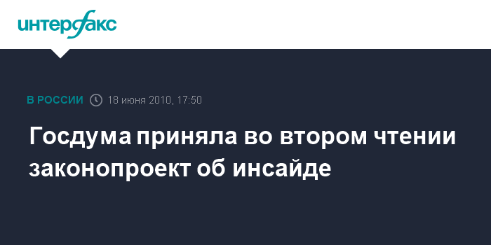 Москва. 18 июня. INTERFAX.RU – Госдума на заседании в пятницу приняла во втором чтении законопроект "О противодействии неправомерному использованию инсайдерской информации и манипулированию рынком и о внесении изменений в отдельные законодательные акты РФ".