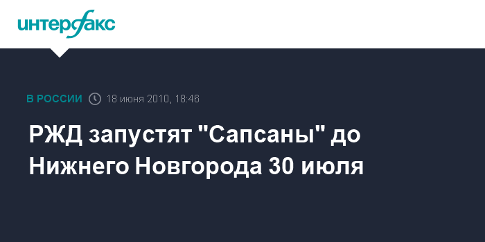 Москва. 18 июня. INTERFAX.RU – ОАО "Российские железные дороги" (РЖД) запустит скоростные поезда "Сапсан" на маршруте Москва - Нижний Новгород 30 июля, сообщила компания. С открытием этой линии РЖД продлят маршрут "Сапсана" Санкт-Петербург - Москва до Нижнего Новгорода. Продажа билетов началась в пятницу, 18 июня.