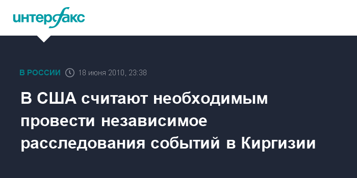 "Я считаю, что такого рода расследование не только позволит определить, кто несет ответственность за происшедшее, но и определит те будущие шаги, которые мы должны предпринять, чтобы обеспечить устойчивую и мирную среду для существования населения, которое проживает на юге Киргизии", - отметил он.
