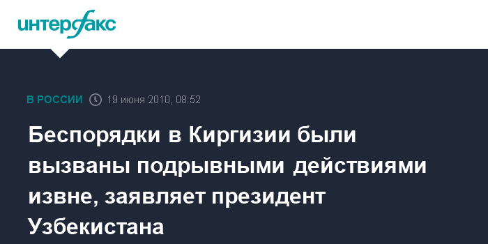 "Такая позиция прослеживается в отношении событий, происходящих в Кыргызстане. Согласно ей, не обязательно искать причины случившегося. Это, мол, противостояние между узбекскими и киргизскими этническими группами", - подчеркнул И.Каримов.