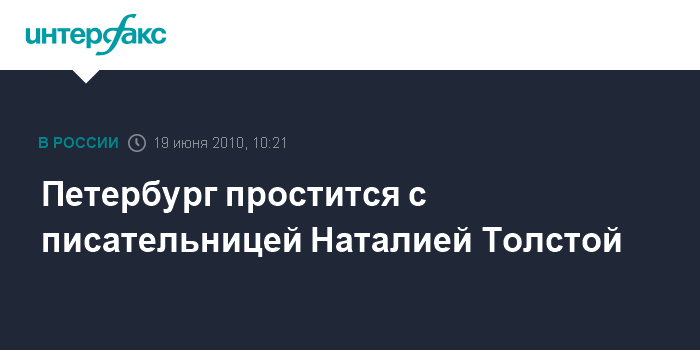 Москва. 19 июня. INTERFAX.RU - Прощание с российской писательницей и филологом Наталией Толстой, скончавшейся в Петербурге 15 июня, пройдет в субботу.