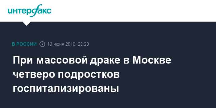 Москва. 19 июня. ИНТЕРФАКС - МОСКВА - На востоке Москвы на берегу озера Белое произошла массовая драка, четверо человек госпитализированы с ножевыми ранениями, сообщил в субботу "Интерфаксу" источник в правоохранительных органах.