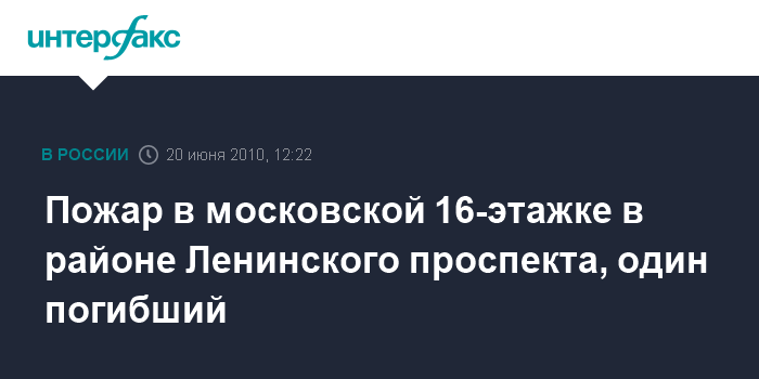 Пожар в московской 16-этажке в районе Ленинского проспекта, один погибший