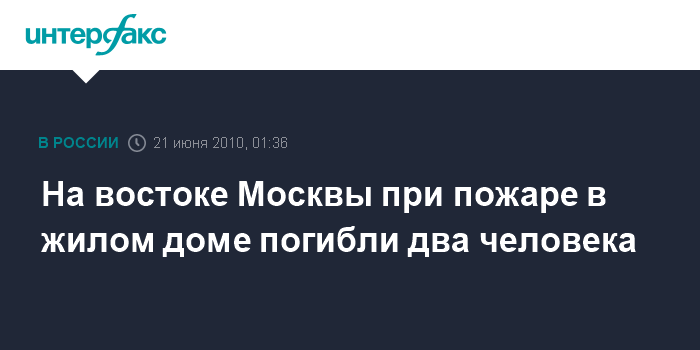 Москва. 21 июня. ИНТЕРФАКС-МОСКВА - Два человека погибли во время пожара в одной из квартир жилого дома на Алтайской улице, в Восточном административном округе столицы.