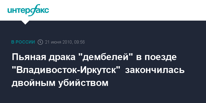 Пьяная драка "дембелей" в поезде "Владивосток-Иркутск" закончилась двойным убийством