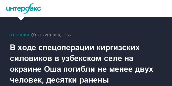 Москва. 21 июня. INTERFAX.RU - Два человека погибли и 17 пострадали в ходе "зачистки", которую провели силовые структуры Ошской области в населенном этническими узбеками селе Нариман, сообщила "Интерфаксу" в понедельник представитель офиса Human Right Watch Анна Нейстат.