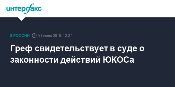 Греф свидетельствует в суде о законности действий ЮКОСа