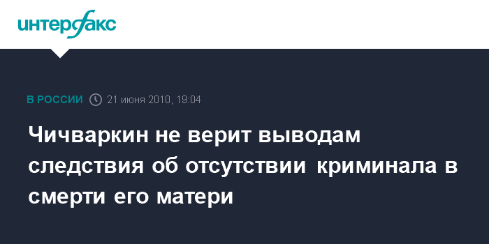 Москва. 21 июня. INTERFAX.RU - Проживающий в Лондоне экс-глава компании "Евросеть" Евгений Чичваркин заявил, что изначально не верил в объективность проверки, проводимой по факту смерти его 60-летней матери, поэтому не удивлен решением следственных органов отказать в возбуждении уголовного дела по данному факту. "Это было понятно с самого первого дня, что уголовное дело возбуждено не будет. Ничего такого я и не ожидал", - заявил Чичваркин "Интерфаксу" в понедельник.