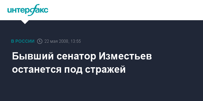 Таким образом, суд отклонил жалобу адвоката экс-сенатора, который просил признать незаконным и необоснованным постановление Мосгорсуда, продлившего срок предварительного заключения Изместьева до 16 июля.