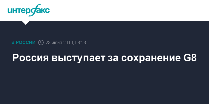 Москва. 23 июня. INTERFAX.RU - Российская сторона считает необходимым сохранение группы стран G8 при одновременном существовании "двадцатки", сообщил "Интерфаксу" источник в российском посольстве в США.