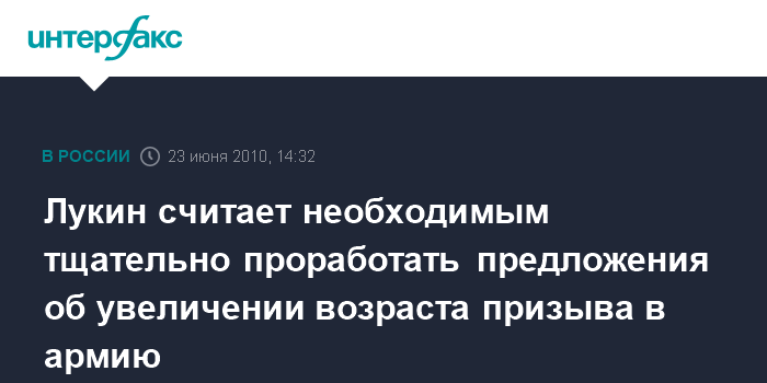 Москва. 23 июня. INTERFAX.RU - Уполномоченный по правам человека в РФ Владимир Лукин заявил, что предложения об увеличении возраста призыва в армию нуждаются в анализе. "Надо подождать конкретные предложения, и проанализировать их", - сказал Лукин "Интерфаксу" в среду. При этом он добавил, что является сторонником максимально возможного движения в направлении контрактной армии.