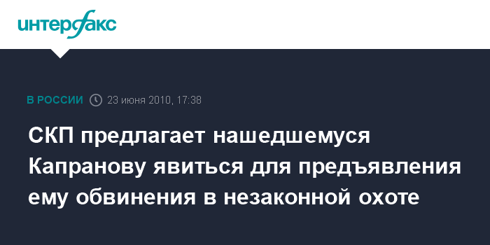 СКП предлагает нашедшемуся Капранову явиться для предъявления ему обвинения в незаконной охоте