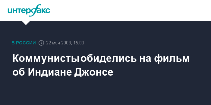 Москва. 22 мая. INTERFAX.RU – Активисты организации "Коммунисты Петербурга и Ленинградской области" выразили возмущение выходом в российский прокат фильма "Индиана Джонс и королевство хрустальных черепов".