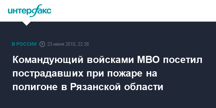 Москва. 23 июня. ИНТЕРФАКС - В Рязанской области, где на полигоне Московского военного округа (МВО) в среду произошло возгорание пороха и пожар, работает комиссия во главе с командующим войсками МВО генерал-полковником Валерием Герасимовым, сообщил "Интерфаксу" пресс-секретарь командующего подполковник Сергей Власов.