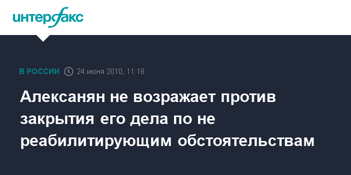 Алексанян не возражает против закрытия его дела по не реабилитирующим обстоятельствам