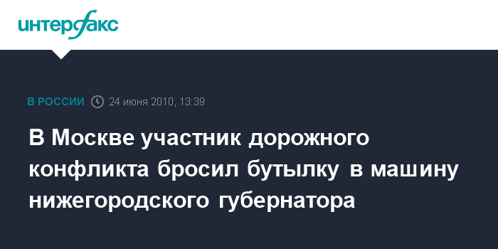 В Москве участник дорожного конфликта бросил бутылку в машину нижегородского губернатора