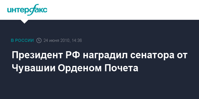 Президент РФ наградил сенатора от Чувашии Орденом Почета