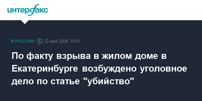 Москва. 22 мая. INTERFAX.RU – Верх-Исетский следственный отдел Следственного управления СКП РФ по Свердловской области возбудил уголовное дело по факту взрыва в жилом доме в центре Екатеринбурга.