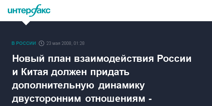 Новый план взаимодействия России и Китая должен придать дополнительную динамику двусторонним отношениям - Медведев