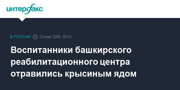 Уфа. 23 мая. INTERFAX.RU - Восемь детей, временно проживавших в реабилитационном центре в Нуримановском районе Башкирии, госпитализированы с диагнозом "отравление крысиным ядом".