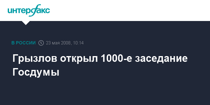 Москва. 23 мая. INTERFAX.RU - Председатель Государственной думы Борис Грызлов, открывая тысячное заседание, поздравил депутатов с юбилеем.