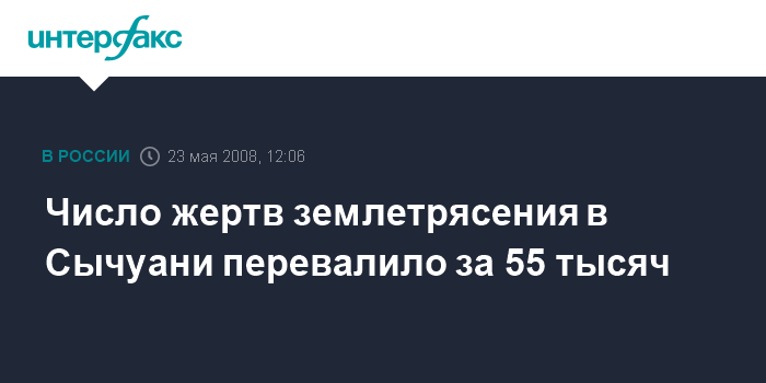 Число жертв землетрясения в Сычуани перевалило за 55 тысяч