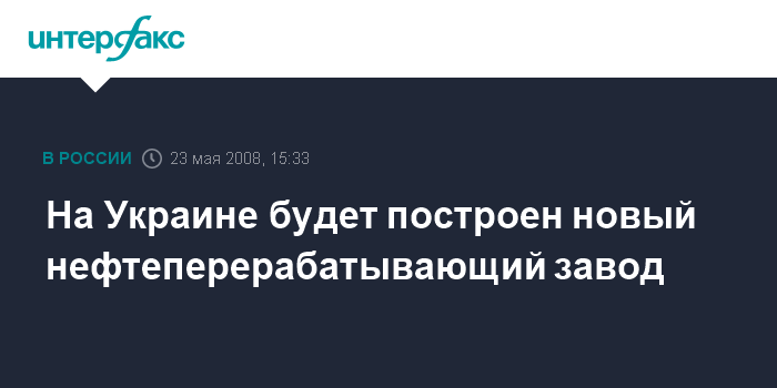 Москва. 23 мая. INTERFAX.RU - В Украине будет построен новый нефтеперерабатывающий завод (НПЗ), заявил глава государства Виктор Ющенко на пресс-конференции после заседания саммита по энергетической безопасности в Киеве в пятницу.