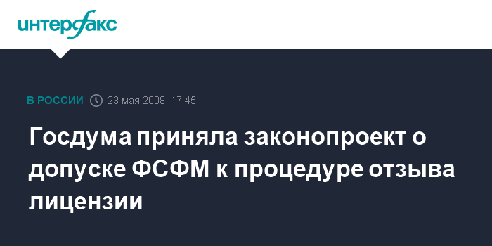 Госдума приняла законопроект о допуске ФСФМ к процедуре отзыва лицензии
