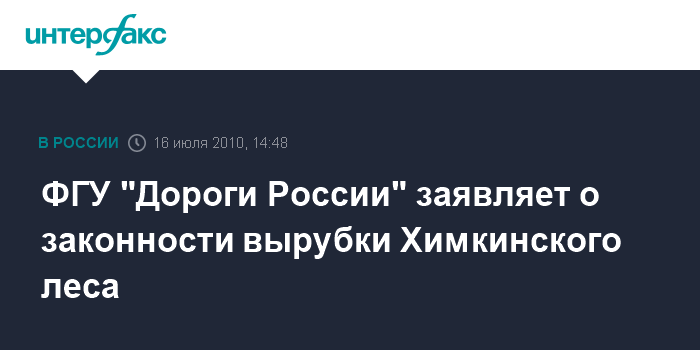ФГУ "Дороги России" заявляет о законности вырубки Химкинского леса