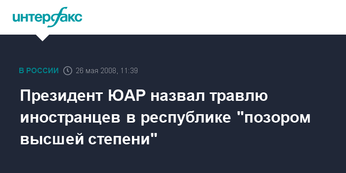 "Никогда с момента рождения нашей демократии мы не были свидетелями такой жесткости. Мы должны расценивать события последних двух недель как позор высшей степени, - заявил президент ЮАР. - Позорные действия меньшинства легли пятном на имя Южной Африки".