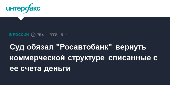 Суд обязал "Росавтобанк" вернуть коммерческой структуре списанные с ее счета деньги