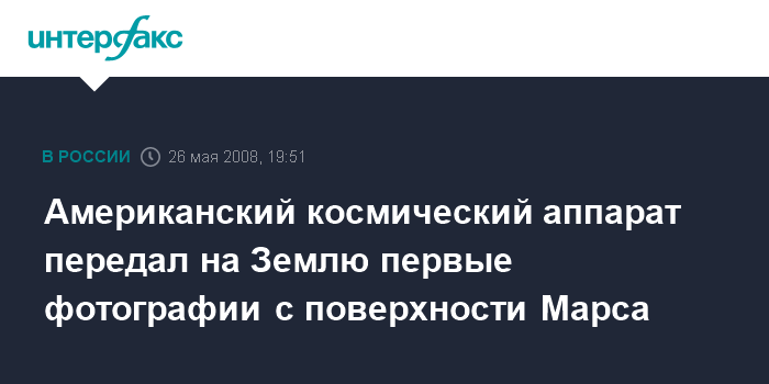 Вашингтон. 26 мая. ИНТЕРФАКС - Американский исследовательский зонд "Феникс" передал первые фотографии с поверхности Марса уже в первый день своего пребывания на планете, сообщает американская телекомпания Си-Эн-Эн.