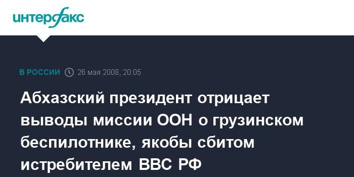 Как сообщалось, миссия ООН по наблюдению в Грузии обнародовала мнение, согласно которому грузинский беспилотный самолет, сбитый 20 апреля над территорией Абхазии, был уничтожен российским истребителем.