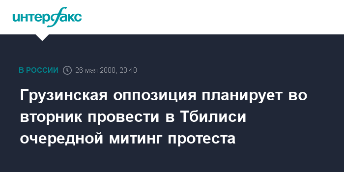 Тбилиси. 26 мая. ИНТЕРФАКС - Объединенная оппозиция Грузии собирается провести во вторник в 13:00 митинг протеста у здания грузинского Общественного телевидения в Тбилиси, заявил в эфире телекомпании "Рустави 2" один из лидеров Объединенной оппозиции Каха Кукава.