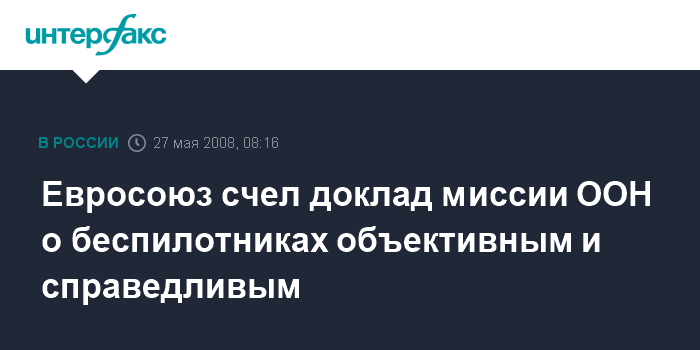 Москва. 27 мая. INTERFAX.RU - Министр иностранных дел Словении, председательствующей в Европейском Союзе, Димитрий Рупел считает "сбалансированным" доклад миссии ООН по наблюдению в Грузии, в котором утверждается, что 20 апреля над территорией Абхазии, грузинский беспилотный самолет был уничтожен российским истребителем.