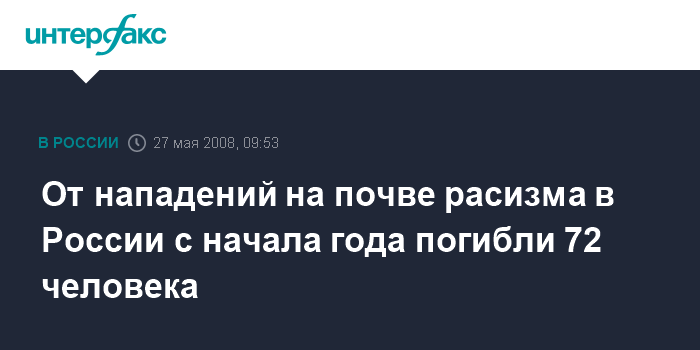 По словам А.Брода, за весь прошлый год в России в результате нападений на почве расизма погибли более 50 и пострадали не менее 200 человек.