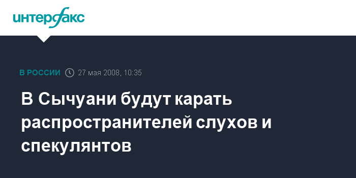 В Сычуани будут карать распространителей слухов и спекулянтов