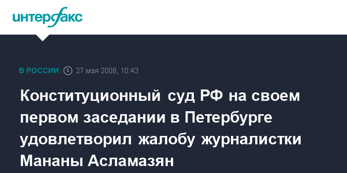 Конституционный суд РФ на своем первом заседании в Петербурге удовлетворил жалобу журналистки Мананы Асламазян