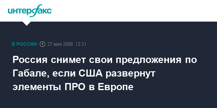 Россия снимет свои предложения по Габале, если США развернут элементы ПРО в Европе
