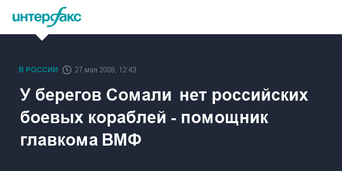 "Если бы подобный инцидент произошел в районе, где присутствуют российские корабли, или в районе, расположенном в непосредственной близости к местам базирования кораблей ВМФ, мы бы немедленно откликнулись на просьбу о помощи", - сказал помощник главкома ВМФ, Добавив, что "в настоящее время ВМФ России не может в одночасье оказаться в проблемных районах. Сейчас идет активный процесс восстановления присутствия российских боевых кораблей в различных регионах Мирового океана".