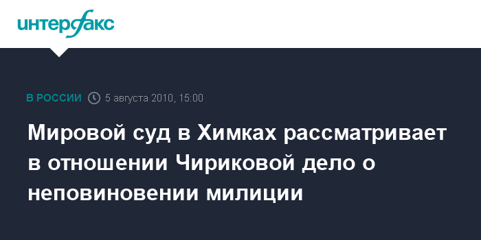 Мировой суд в Химках рассматривает в отношении Чириковой дело о неповиновении милиции