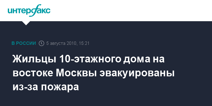 Жильцы 10-этажного дома на востоке Москвы эвакуированы из-за пожара