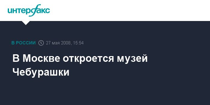 Москва. 27 мая. INTERFAX.RU - Музей Чебурашки откроется в Восточном административном округе Москвы в четверг, сообщили "Интерфаксу" в пресс-службе ВАО.