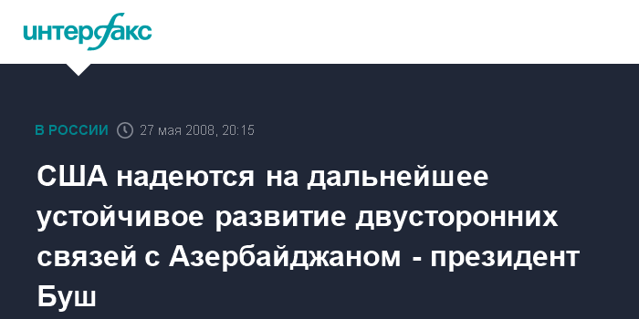 США надеются на дальнейшее устойчивое развитие двусторонних связей с Азербайджаном - президент Буш
