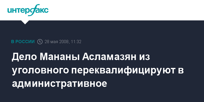 Москва. 28 мая. INTERFAX.RU - Уголовное дело главы фонда "Образованные медиа" журналистки Мананы Асламазян будет прекращено и переквалифицировано на соответствующую статью Кодекса об административных правонарушениях (КоАП).