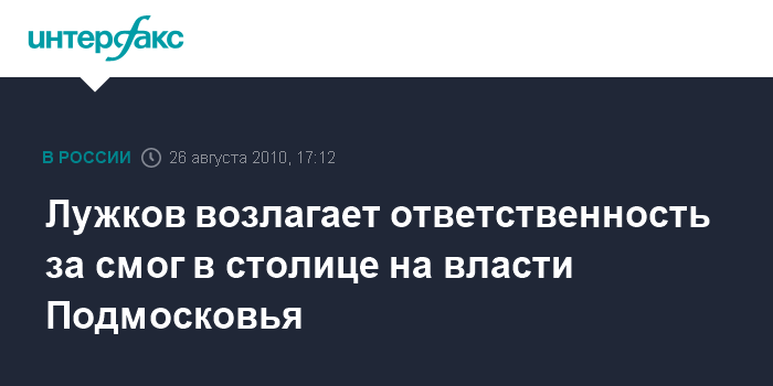 Москва. 26 августа. INTERFAX.RU - Мэр Москвы Юрий Лужков считает, что столица страдала от смога и дыма из-за бездеятельности властей Подмосковья.