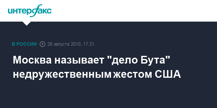 Москва. 26 августа. INTERFAX.RU - Судебный процесс по делу российского предпринимателя Виктора Бута может негативно сказаться на российско-американских отношениях, считают в Москве.