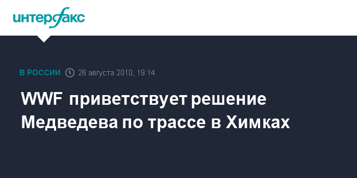 Москва. 26 августа. INTERFAX.RU - Одна из ведущих международных экологических организаций, Всемирный фонд дикой природы (WWF) поддержала решение президента РФ приостановить строительство автодороги через Химкинский лес.